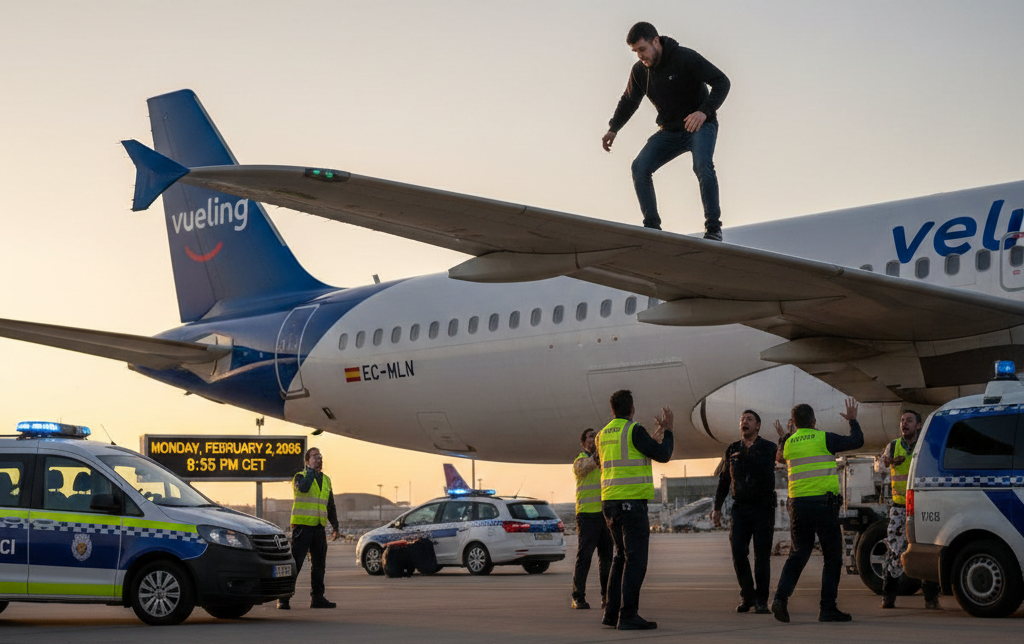 Civil Guard officers arrested a 24-year-old Moroccan national on Monday evening after he breached multiple layers of high-level security at Barcelona-El Prat Airport and scaled the roof of a Vueling Airbus A320. The incident occurred at approximately 21:40 local time at Terminal 1, while the aircraft was being prepared for a scheduled domestic flight to Seville, forcing an immediate suspension of ground operations and the evacuation of the jet bridge.