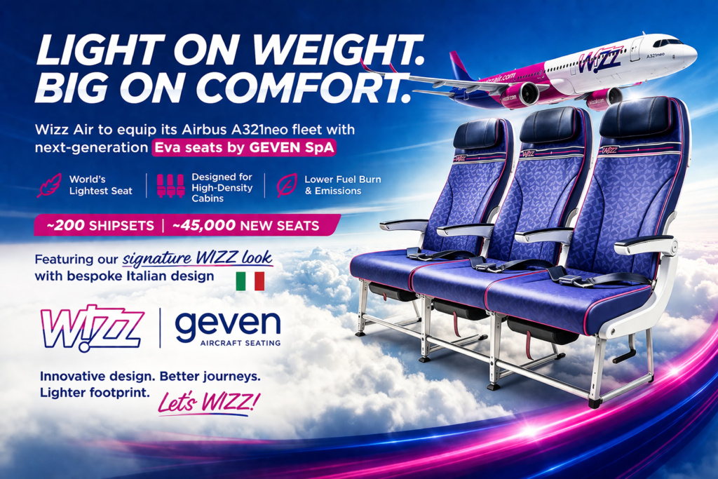 In a major cabin upgrade announcement, Wizz Air has confirmed that its growing fleet of Airbus A321neo aircraft will be fitted with next-generation “Eva” seats from GEVEN SpA. The move reinforces the airline’s strategy to enhance passenger comfort while driving down emissions and operating costs.